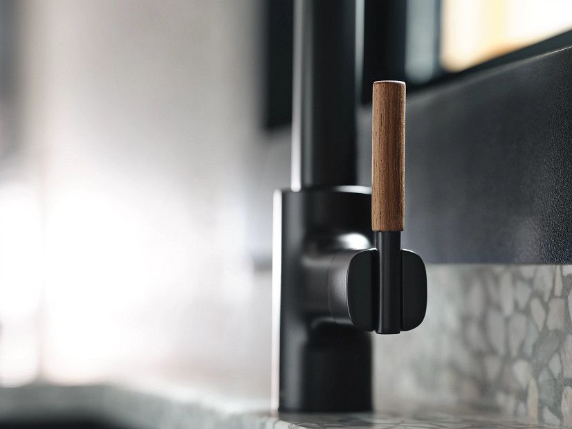 La manija retráctil se oculta dentro del caño para mantener una estética limpia y, al mismo tiempo, ofrecer alcance extra y libertad total de movimiento. -